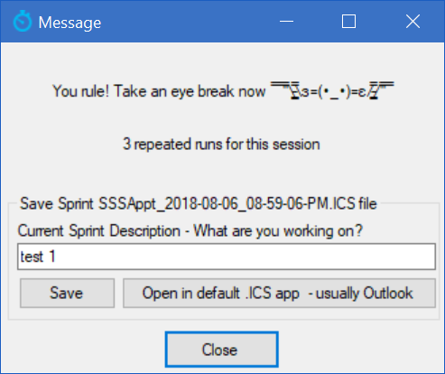Solo SCRUM Sprinter App defaults to the following pop-up message, which you can customize.